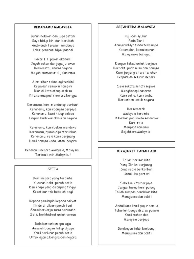 Lirik Lagu Keranamu Malaysia - Lirik Keranamu Malaysia Pdf. Gaya hidup kini dah berubah. Keranamu malaysia song by pak ngah suhaimi words by siso lagu buruh nelayan dan juga petani a very nostalgic & patriotic song. Add to my workbooks (0) Memang benar seperti kata lirik lagu keranamu malaysia yang menyatakan bahawa rakyat mendapat tuah, berjaya, hidup selesa dan kemakmuran negara adalah . Gaya hidup kini dah berubah. Buruh, nelayan dan juga petani. Buruh nelayan dan juga petani.